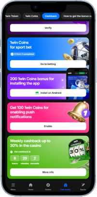 - 1win Coins loyalty – when you install the mobile app and sign up for push notifications, you’ll get 200 bonus coins that can be traded for real cash, starting at a minimum of 1,000 coins.